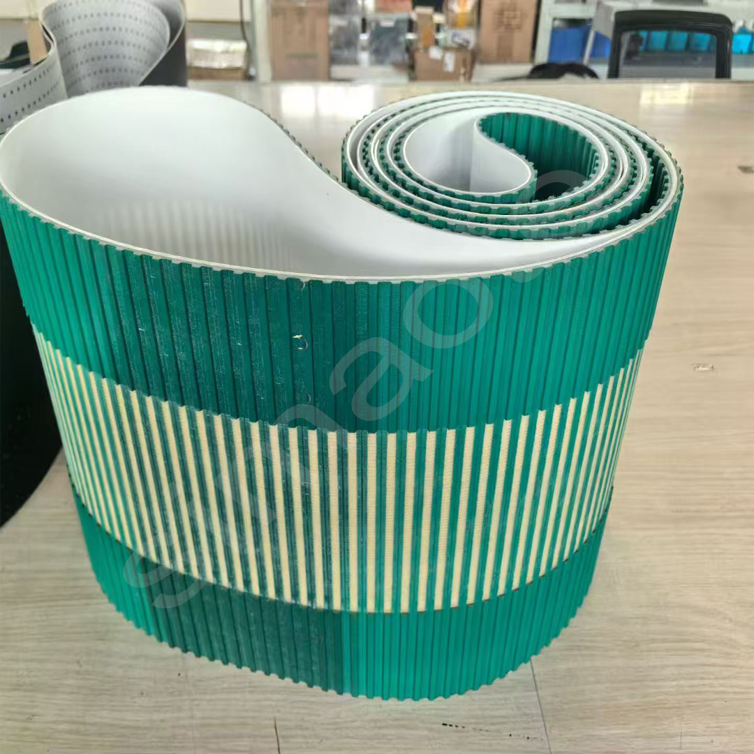 橡膠同步帶傳動是由一根內(nèi)周表面設(shè)有等間距齒形的環(huán)行帶及具有相應吻合的輪所組成。它綜合了帶傳動、鏈傳動和齒輪傳動各自的優(yōu)點。轉(zhuǎn)動時,通過帶齒與輪的齒槽相嚙合來傳遞動力。 傳輸龍同步帶傳動具有準確的傳動比,無滑差,可獲得恒定的速比,傳動平穩(wěn),能吸振,噪音小,傳動比范圍大,一般可達1:10。允許線速度可達50M/S,傳遞功率從幾瓦到百千瓦。傳動效率高,一般可達98%,結(jié)構(gòu)緊湊,適宜于多軸傳動,不需潤滑,無污染,因此可在不允許有污染和工作環(huán)境較為惡劣的場所下正常工作。 傳輸產(chǎn)品廣泛用于紡織、機床、煙草、通訊電纜、輕工、化工、冶金、儀表儀器、食品、礦山、石油、汽車等各行業(yè)各種類型的機械傳動中。橡膠同步帶的特點   (1)傳動準確,工作時無滑動,具有恒定的傳動比;  (2)傳動平穩(wěn),具有緩沖、減振能力,噪聲低;  (3)傳動效率高,可達0.98,節(jié)能效果明顯;  (4)維護保養(yǎng)方便,不需潤滑,維護費用低;  (5)速比范圍大,一般可達10,線速度可達50m/s,具有較大的功率傳遞范圍,可達幾瓦到幾百千瓦;  (6)可用于長距離傳動,中心距可達10m以上。橡膠同步帶傳動的主要失效形式  ①帶體疲勞斷裂;   ②帶齒剪斷和壓潰;   ③帶側(cè)、帶齒磨損、包布剝離;   ④承載層伸長、節(jié)距增大、形成齒的干涉、爬齒;  ⑤沖擊、過載使帶體斷裂。